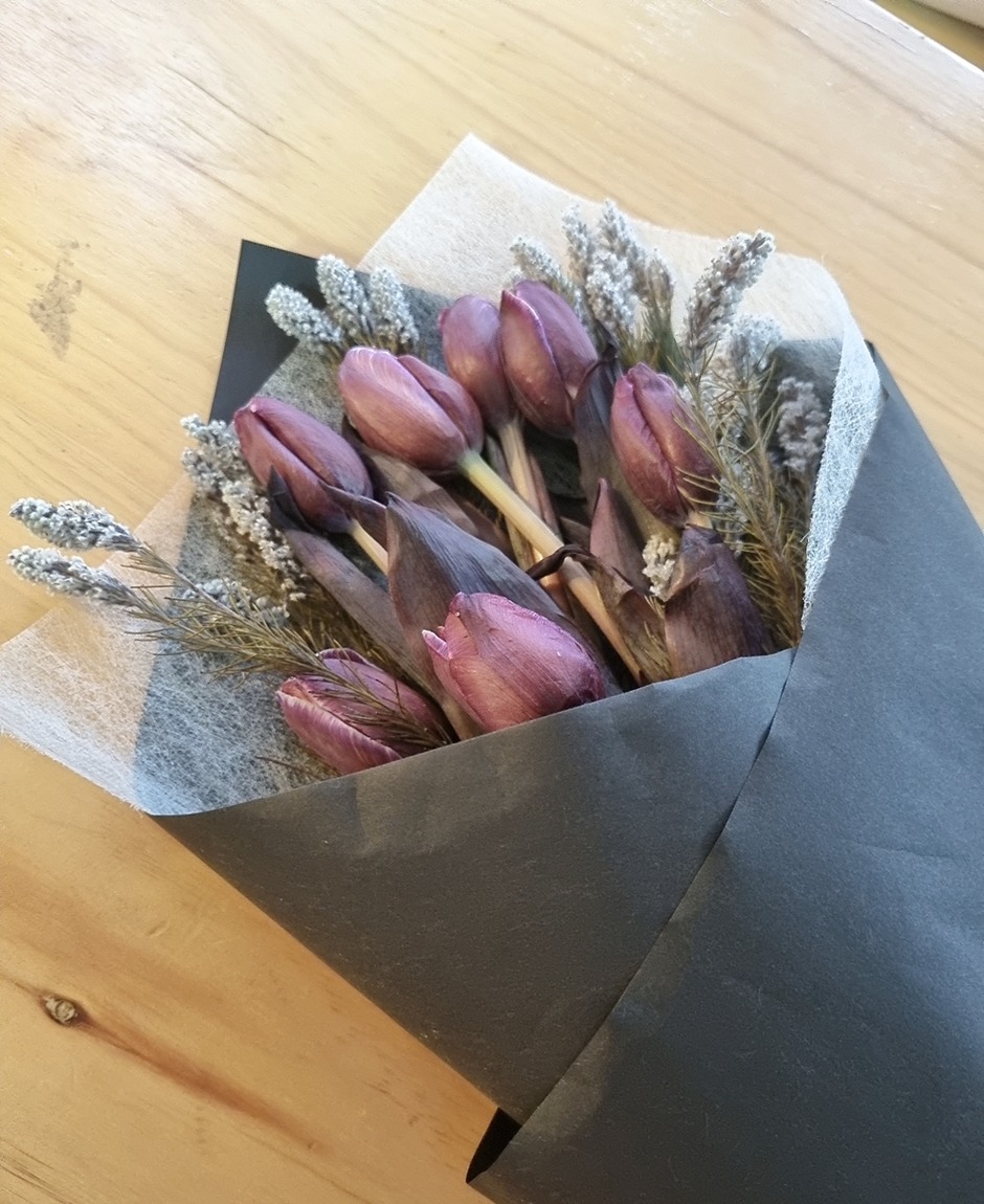 Appx dimension of bouquet : 35cm (W) x 48cm (H)